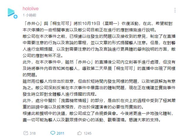 Hololive 旗下 vtuber「桐生可可」宣布畢業 7 月 1 日將舉行畢業演唱會.